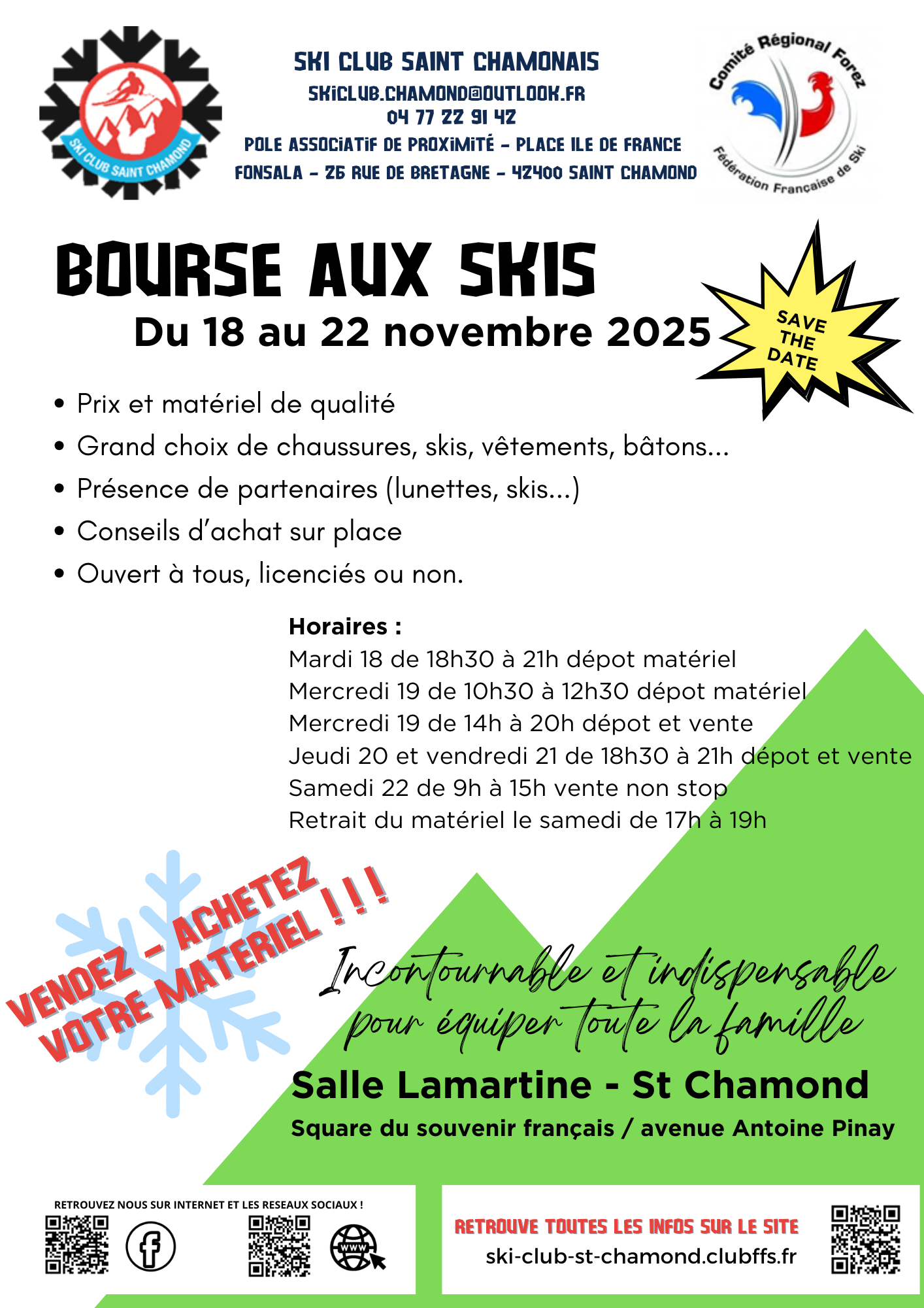 Incontournable pour renouveler votre équipement, avec les conseils de nos spécialistes. Rendez-vous du 18 au 22 novembre 2025, salle Lamartine, square du Souvenir français, Avenue Antoine Pinay à Saint Chamond :